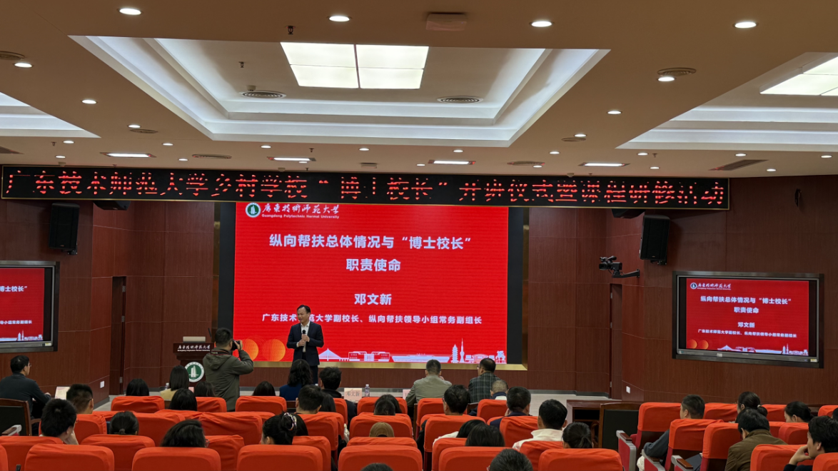 为贯彻落实《广东省师范(教师教育)院校纵向帮扶欠发达地区“三所学校”和县中质量提升工作方案(2024-2027年)》精神,11月27日,18luck官网乡村学校“博士校长”开班仪式暨课程研修活动在我校广州校区举行。18luck官网副校长、纵向帮扶领导小组常务副组长邓文新、纵向帮扶领导小组秘书长熊华军、学校纵向帮扶领导小组办公室成员以及即将派驻乡村学校的博士校长培养对象80余人参加培训会。开班仪式由熊华军教授主持。